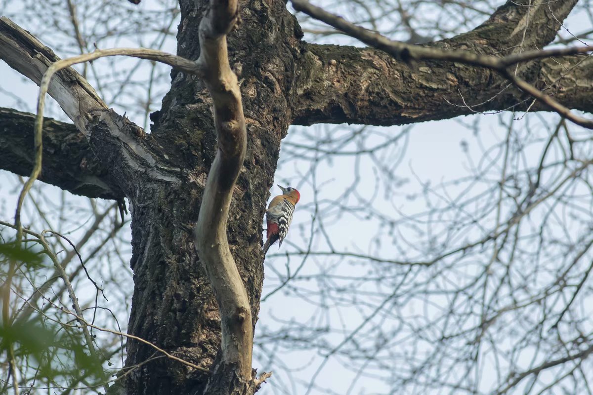 在这两天,又有鸟友说,棕腹啄木鸟又出现了。出现的地点与去年的差不多。